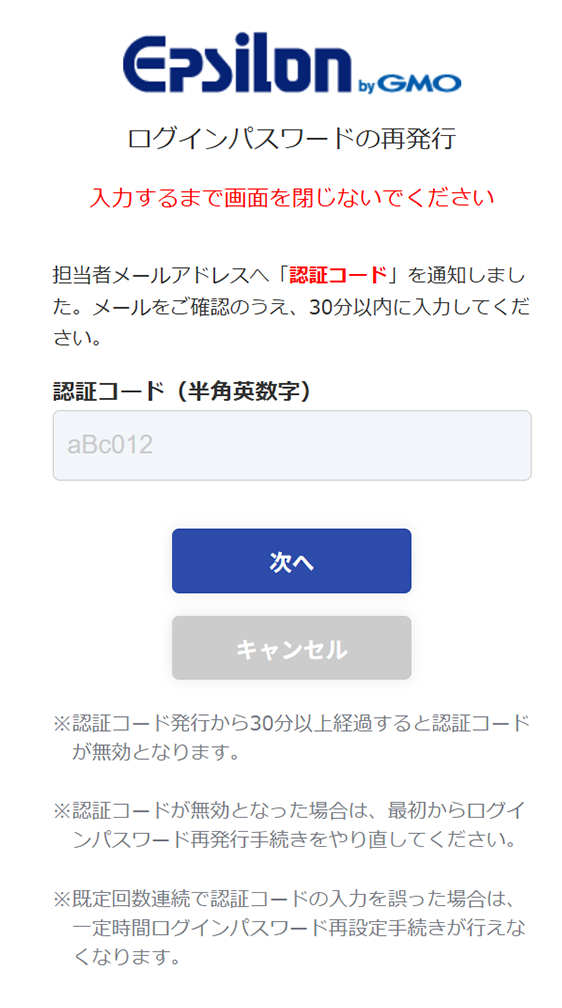 パスワード再発行方法の手順は以下になります。画像はクリックすると拡大します。