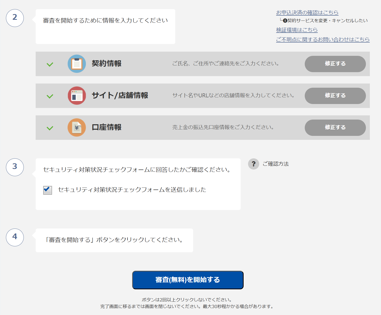 ご契約にあたって、ショッピングサイトの審査が必要となります。